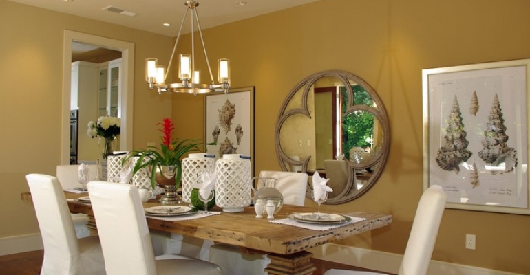 Причем в зеркалах должны отражаться сидящие за столом люди и находящиеся на нем блюда. Согласно философии фен-шуй, это привлекает в дом богатство. Есть и другой оригинальный вариант размещения зеркального полотна – над плитой. В идеале в зеркале должен отражаться вход в помещение. А вот отражения огня в нем лучше избегать.