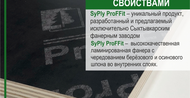 В декабре 2017 года Сыктывкарским фанерным заводом был представлен абсолютно новый вид фанеры - SyPly ProFFit (ламинированная фанера с чередованием слоев березового и осинового шпона во внутренних слоях) в толщинах 15, 18 и 21 мм.