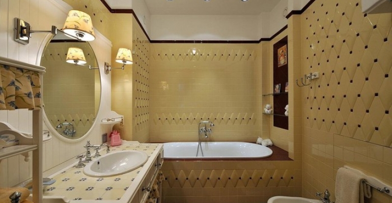Нужно усложнить геометрию? Используйте зеркальные элементы в отделке. Но не переусердствуйте с креативом. Слишком много зеркал – не лучший вариант для ванной комнаты. Вряд ли в таком интерьере получится как следует расслабиться, принимая водные процедуры. Да и ухода отражающие поверхности требуют особого.