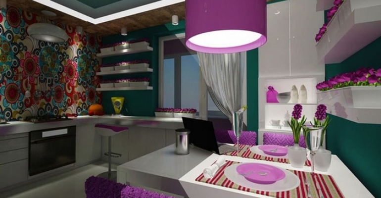 Фасады сочного цвета, светлые столешницы с микротекстурой.