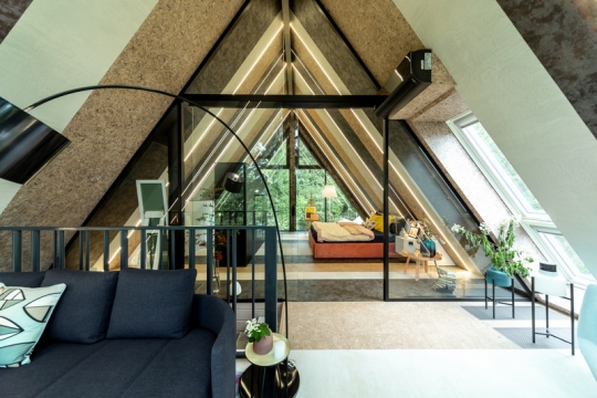Дизайнер Мария Макарова предложила парадоксальное решение для резного дома и создала для его мансарды ...